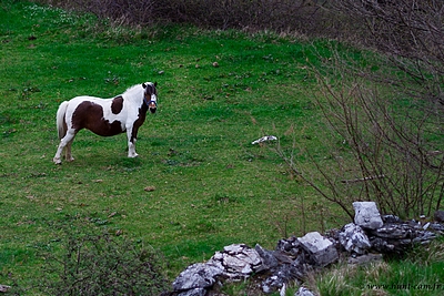 Les juments sont au pré du caillou tout en haut juste avant le pylone de la ligne très haute tension.