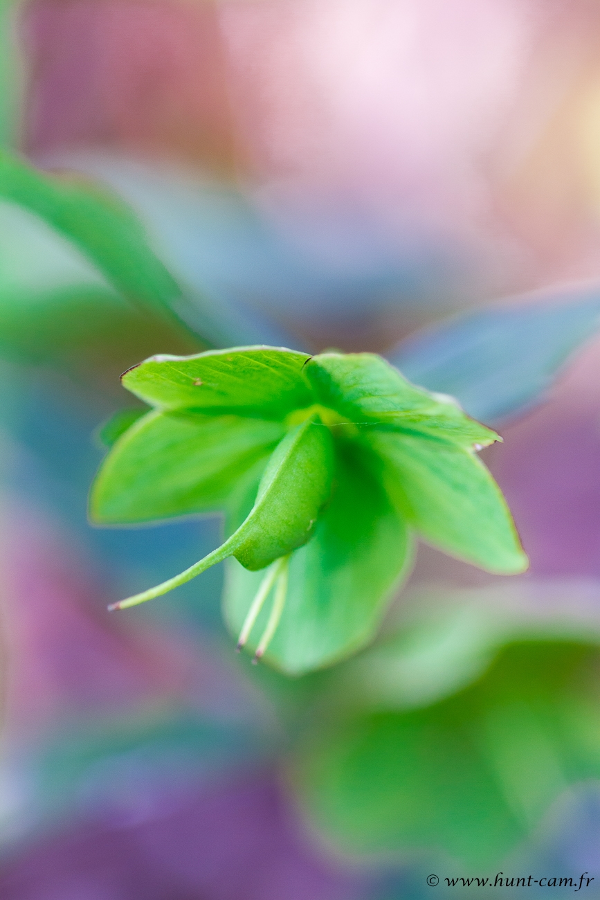 J'arrive toujours dans le pré par le haut et pour se faire je longe la clôture sous les bois. J'évite d'écraser un bouquet d'Euphorbes.