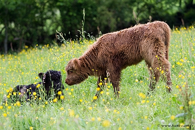 Brindille a choisi son moment pour quitter son pré tout la haut et descendre rejoindre le troupeau de Capi.