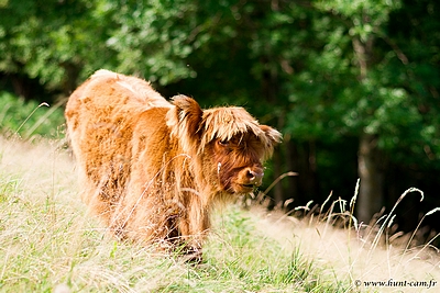 Au moment de rentrer dans le pré en passant sous la clôture, j'aperçois une biche en face !
