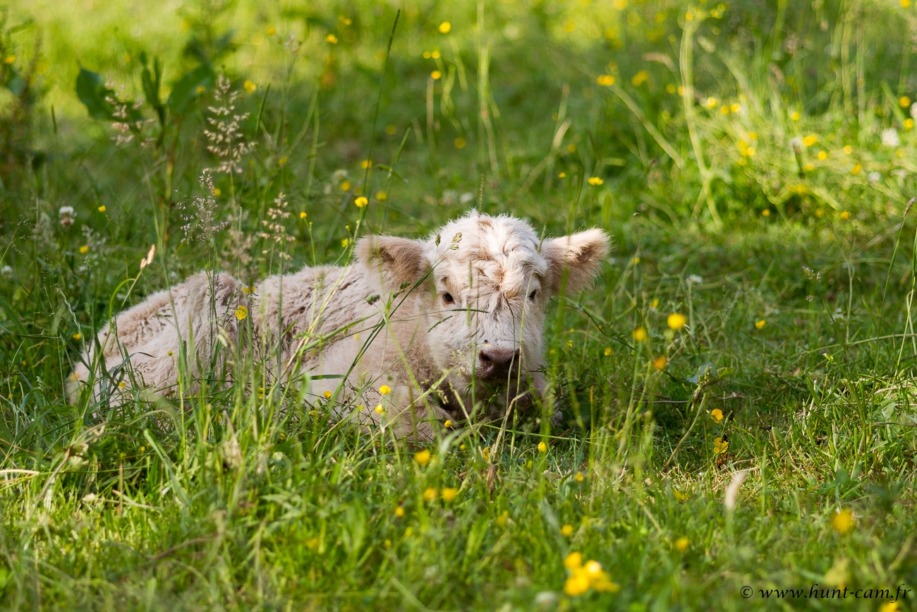 Ce Week End j'étais chez Olivier Coche et Alice Courouble à Ambronay pour l'assemblée générale de la French Highland Cattle Society. Un retour dans la nuit pour une arrivée tôt le matin à la maison. C'est donc Valérie qui est allée faire le tour des troupeau et c'est elle qui a eu la chance de découvrir Moïra à côté de sa mère.