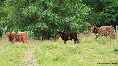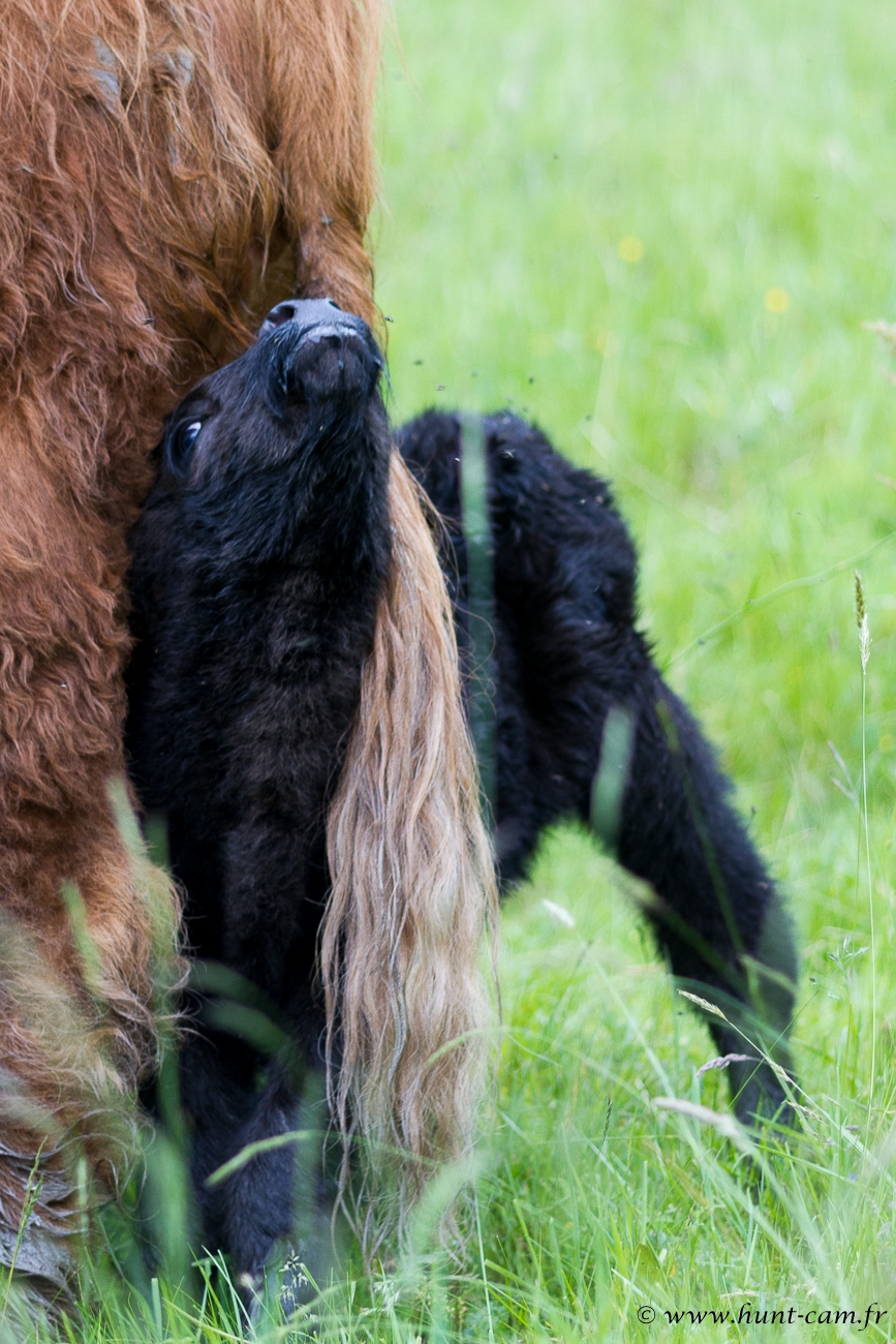 Griotte a, tout comme Chiara attendu que je rentre de la Highland-Day pour vêler ce matin. Valérie l'a vu et il allait bien, Ishbel et Ilendil sont d'adorables "tata" et le suivent et le protègent comme son ombre. Sauf qu'il fait chaud, très chaud et il y a plein de mouches.