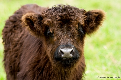 Griotte n'est pas contente ! Elle n'aime pas que je touche son petit. C'est certainement la mère la plus protectrice de notre cheptel, elle surveille tout même pour les veaux des autres.