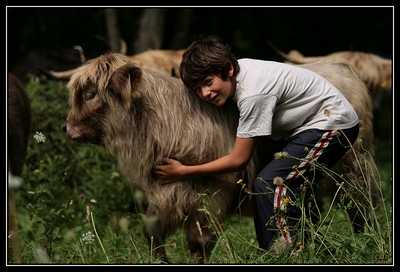 C'est à ce moment que l'on se rend compte du caractère de tel ou tel veau. Certains refusent tout contact et d'autres comme ici Hoppy sont déjà de vrais pots de colle. |