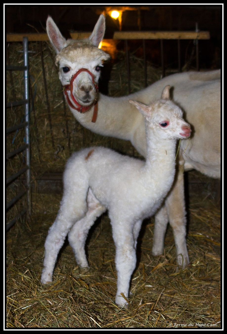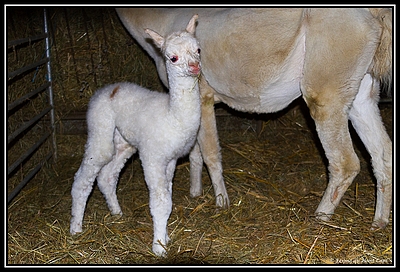 Carlène a enfin fait son cria, c'est un petit mâle tout blanc avec une toute petite tache marron sur le dos |