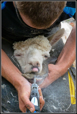 | La tonte de Féowenn est terminée, commence la taille des dents. |